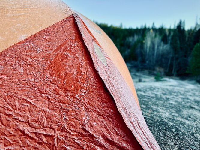 Wir machten uns einen gemütlichen Abend mit Lagerfeuer und leckerem Essen. Die Nacht war frisch, aber in unseren Winterschlafsäcken schlief es sich prima. Es war nur ein wenig frostig am nächsten Morgen.